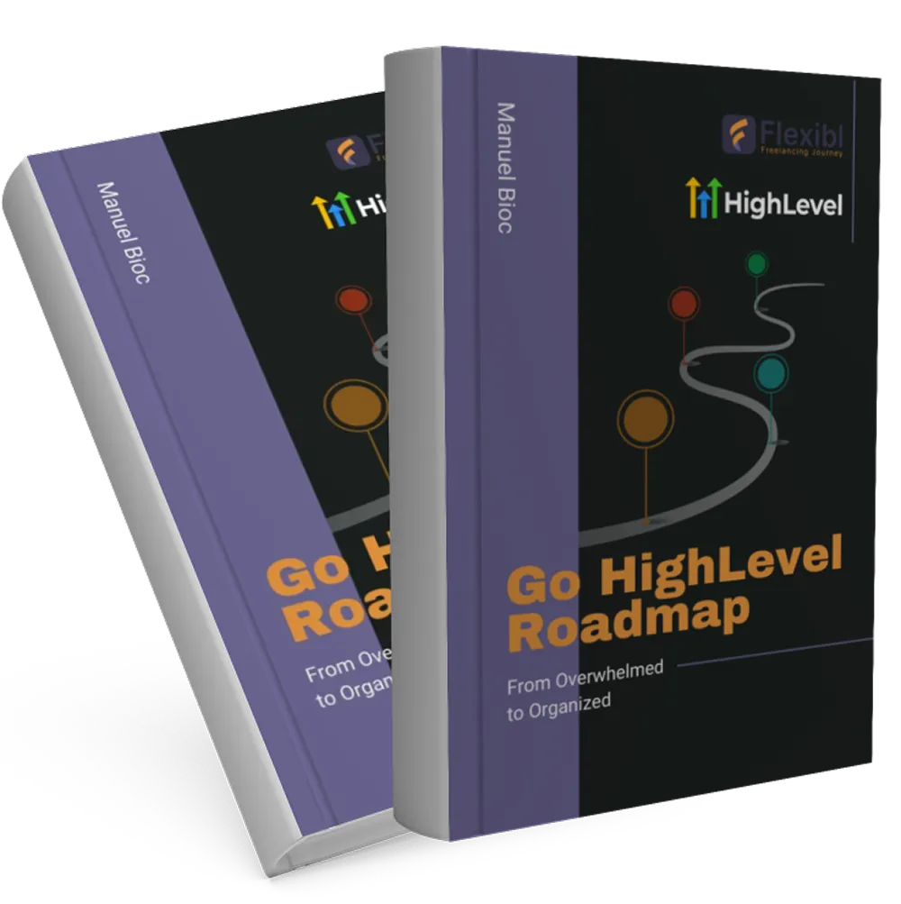 Get your free copy of “Go HighLevel Roadmap: From Overwhelmed to Organized” and Sub-account today.